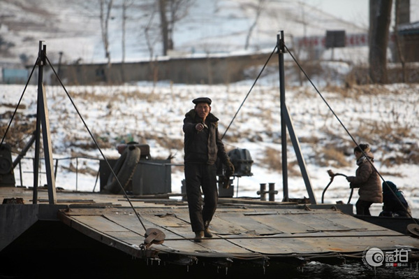 2月12日,边境线上洗衣服的朝鲜妇女。