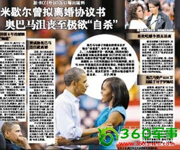 本文摘自《广州日报》2012年5月17日A12版作者:阿南原题为:米歇尔曾拟离婚协议书奥巴马沮丧至极欲“自杀”