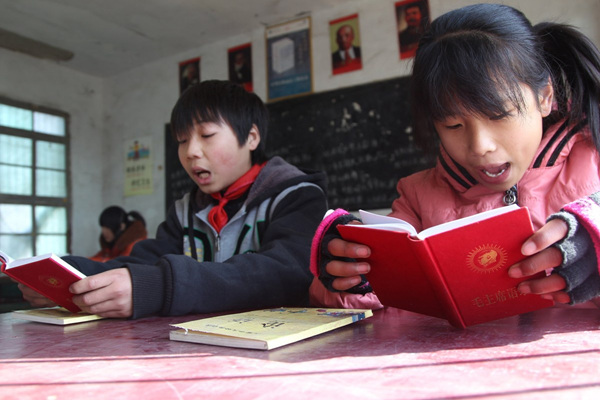 两名学生在学习毛泽东语录。