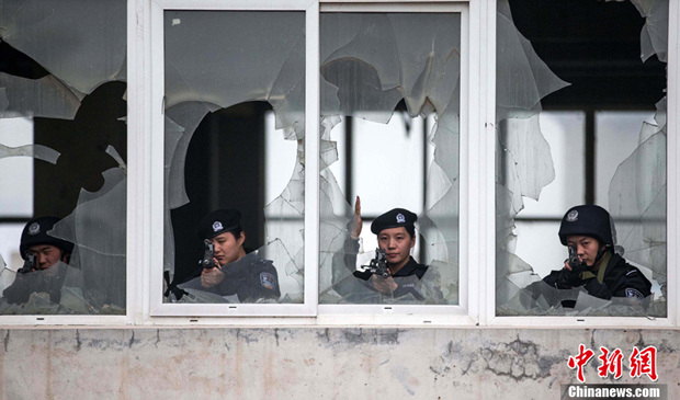 实拍特警“巷战”反恐演练(1)(4)