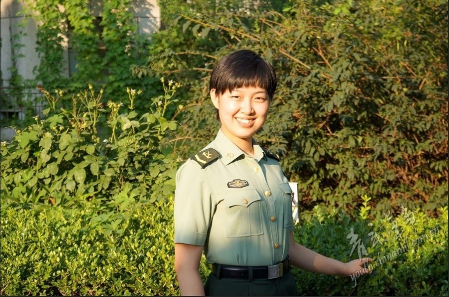 于是她每天在别人休息时,还加班加点练队列。在奔赴阅兵村前的最后一次单兵考核中她考了排面第一、方队前十名,于是在方队的位置就调整到了排头兵,并担任该排面排面长。
