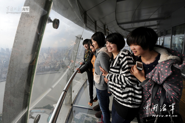 东海舰队某水警区退伍女兵畅游上海